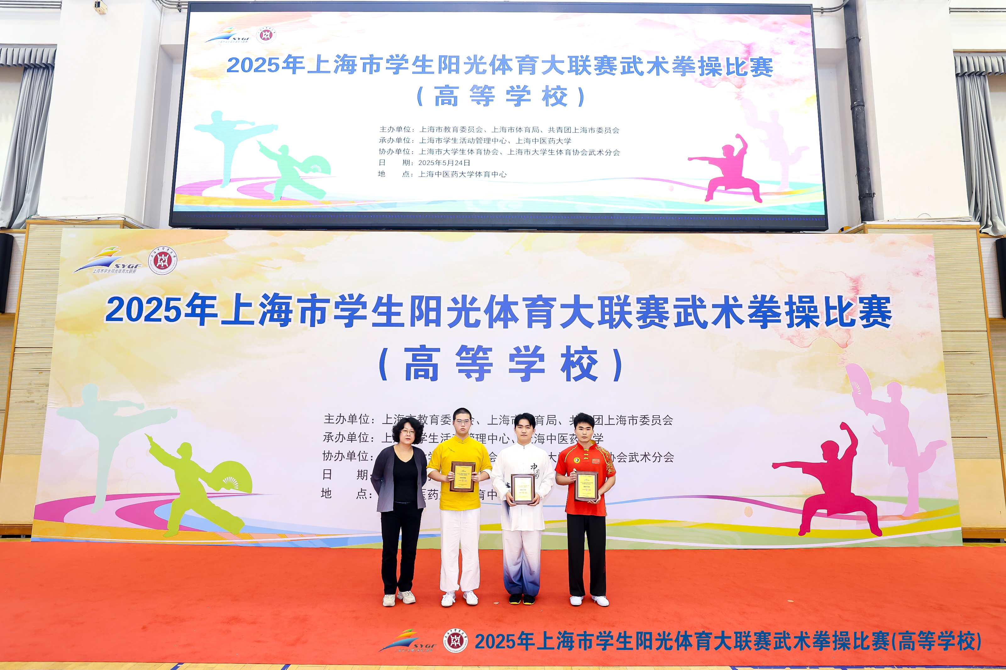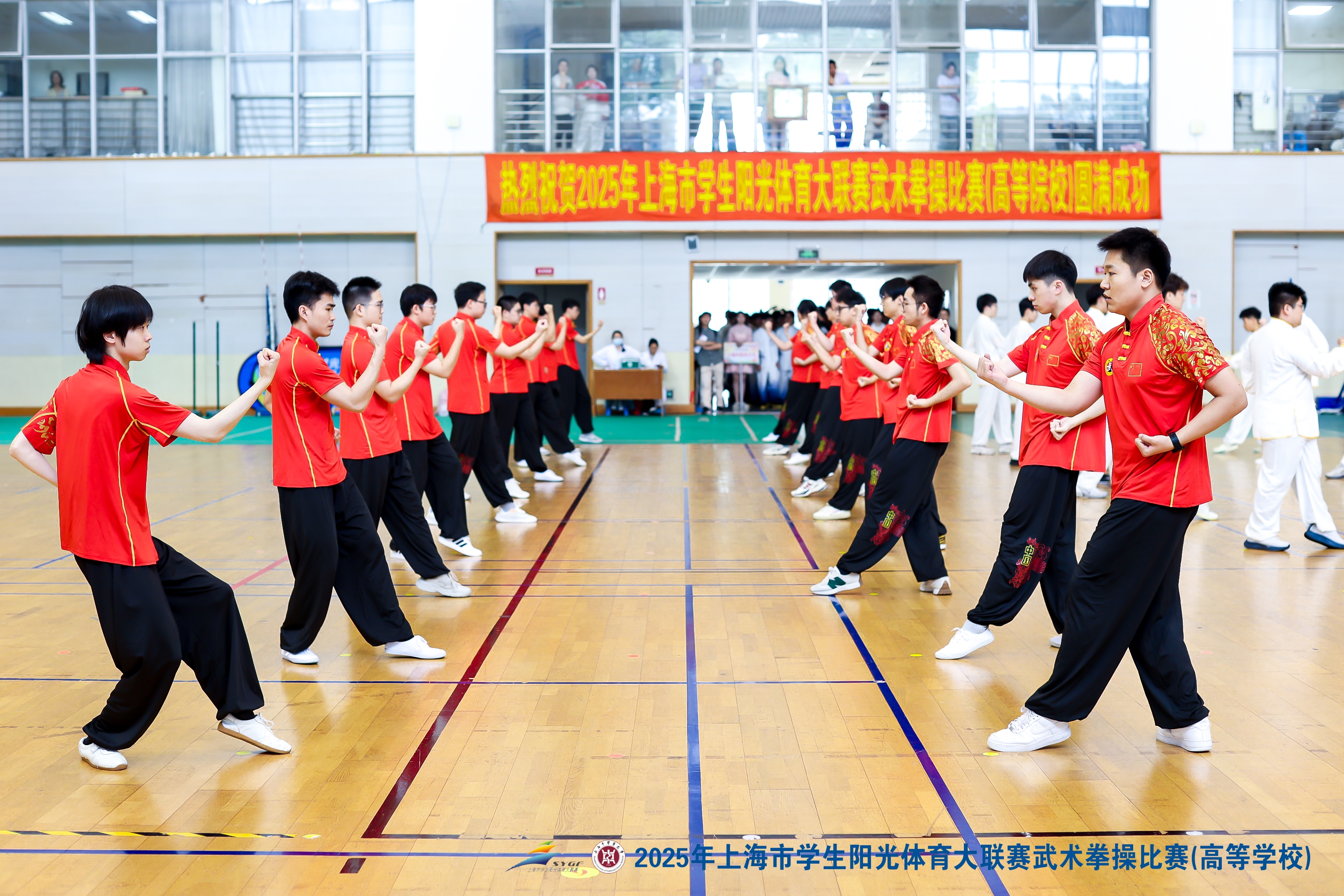 5 月 24 日上午,2025 年上海市阳光体育大联赛武术拳操竞赛在上海中医药大学体育馆激情开赛。本次赛事由上海市教育委员会、上海市体育局、共青团上海市委员会联合主办,上海市员工活动管理中心、上海中医药大学承办,来自全市 16 所本科及高职院校的武术健儿齐聚一堂,以武会友,展开激烈角逐。