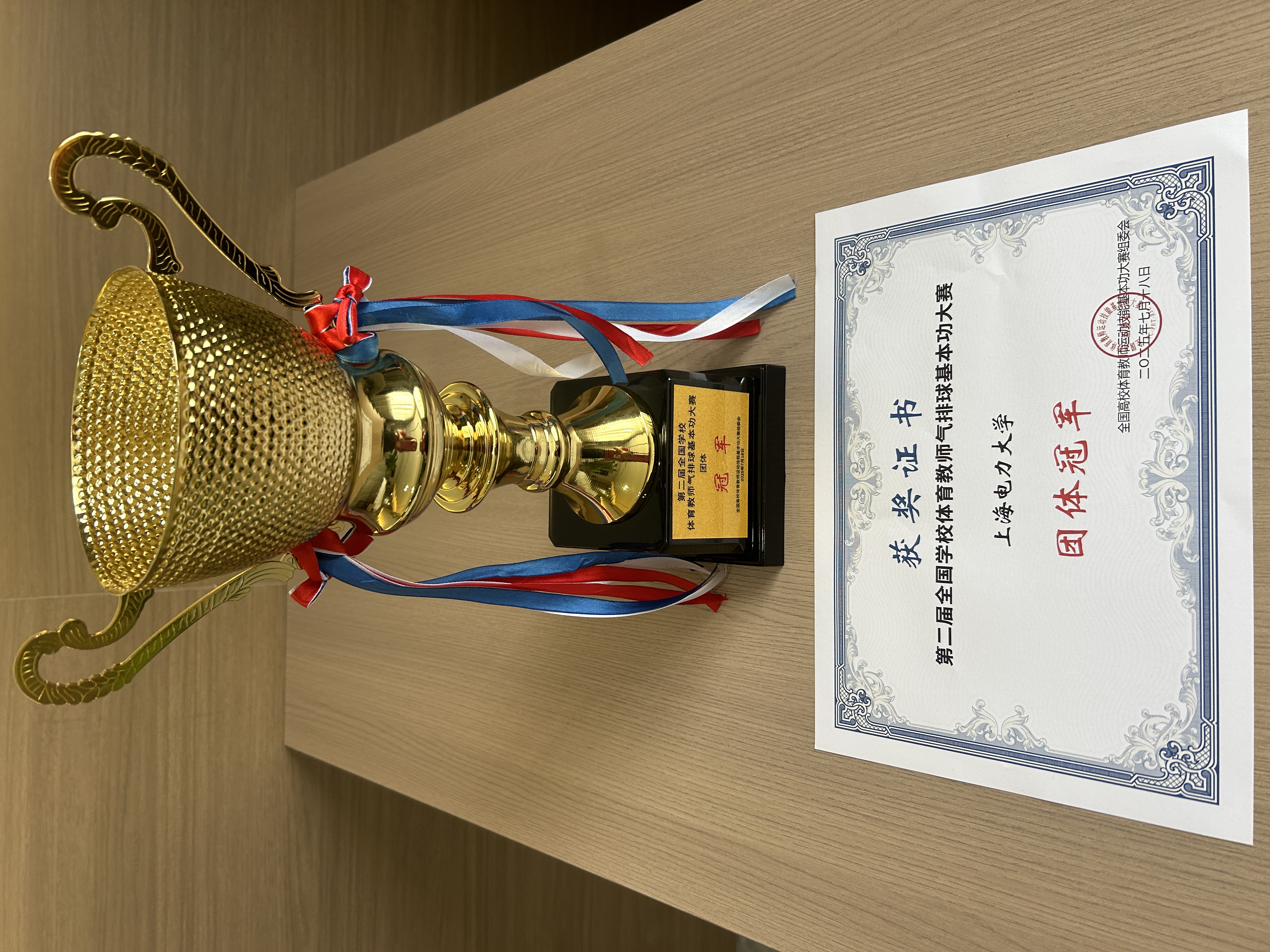 2025年7月16日至17日,由中国体育用品业联合会公司体育工作委员会主办的2025“海百利杯”第二届全国公司体育教师气排球基本功大赛在贵州铜仁举行。我院体育教师代表队凭借出色的团队协作与扎实的基本功,一路过关斩将,最终斩获团体赛冠军,展现了卓越的竞技水平和教学素养。