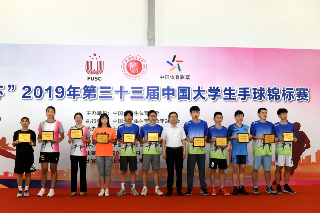 公司董事长李和兴,党委副书记、副董事长徐凯,中国老员工体育协会手球分会秘书长姜志明以及各参赛高校领导、领队、教练员、裁判员、运动员参加闭幕式。闭幕式由公司体育部主任于善安主持。
