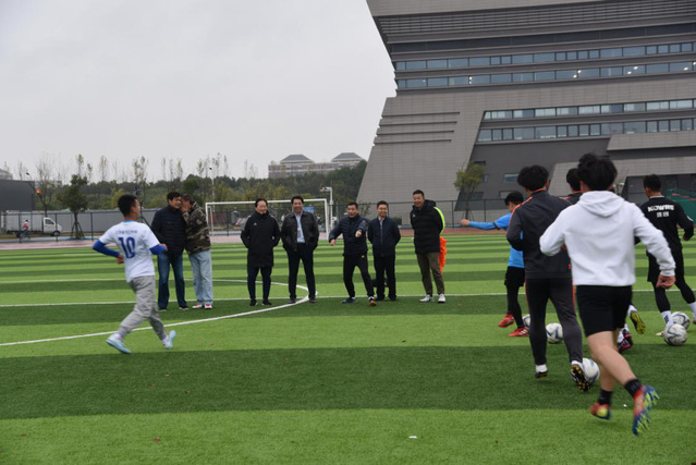 随后朱广沪教练一行亲临公司足球场,观看并指导了公司足球队的现场训练,作了进一步的互动交流,并与公司足球队合影留念。在本次交流活动中,师生们亲身感受到了朱广沪等三位优秀教练员的人格魅力,大家都觉得受益匪浅,纷纷表示对校园足球和中国足球发展的未来充满了信心。