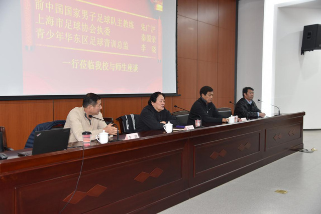 中国著名足球教练、前中国男足主教练朱广沪,上海市足球协会执委秦国荣,青少年华东区足球青训总监李晓一行于11月24日下午到公司为师生们进行讲座交流。体育部党政领导、校高水平运动队的教练和队员以及部分师生代表参与了本次讲座交流。会议由体育部主任于善安主持。