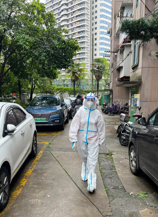 “请问是居委会吗?我要报名志愿者,有什么需要随时找我!”在浦西封控的前两天,姜燕萍老师第一时间找到居委会主动报名了社区志愿服务。3月30日,正式上岗所住小区抗疫志愿者的工作。4月1日,作为核酸志愿者准时上岗,组织居民开展核酸筛查工作,每天在小区志愿者群里待命,只要有任务下达,第一时间响应,开展核酸筛查工作、上门给居民发放物资、抗原、药品,进行楼道消杀等。4月22日,加入了小区临时党支部群,主动亮明身份,服从组织安排,主动认领任务,在志愿者队伍里发挥带头作用。5月8日起,小区疫情有反弹,防控任务也不断加重,当她看到排班表中报名晚上值班的党员不多,主动认领了晚上18:00-20:30的小区值班任务,负责消杀工作。
