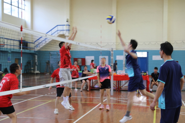 比赛采用男女混合的五人制, 比赛中,双方队伍精神振奋、奋勇争先,在相互切磋和学习中展现了娴熟的球技、顽强的斗志和默契的配合,传球、扣杀、拦网等体现了两校排球协会的专业水平,赢得了在场观众的阵阵喝彩。